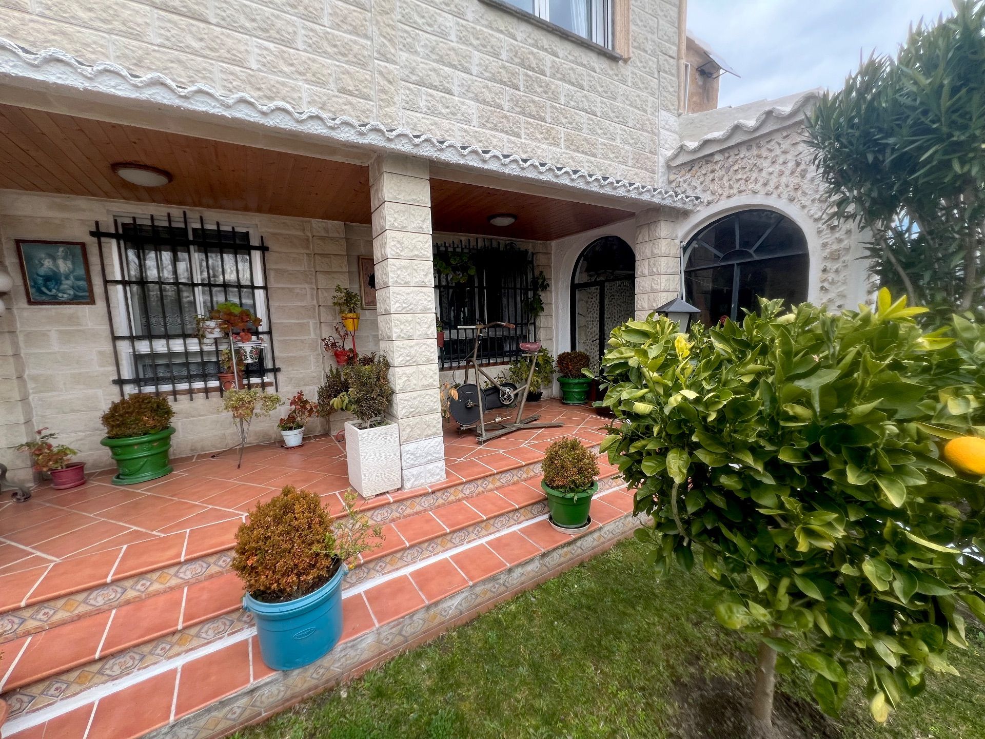 JARDIN: Dos porches uno cubierto y cerrado decorativo y otro al aire libre. En el mismo podemos encontrar todo tipo de arboles frutales, rosales, fuentes decorativas etc. Además cuenta con una PISCINA cubierta con depuradora.